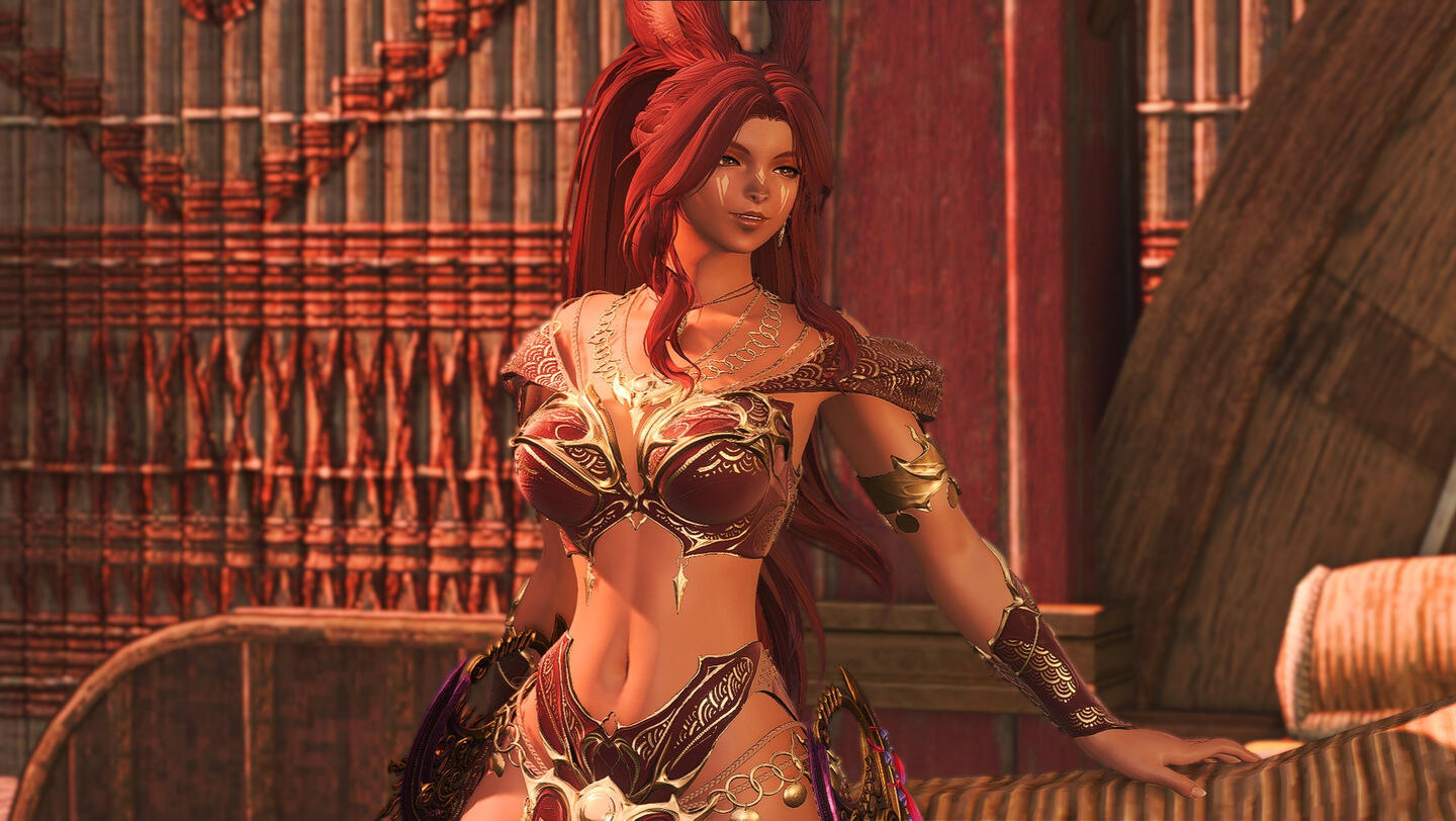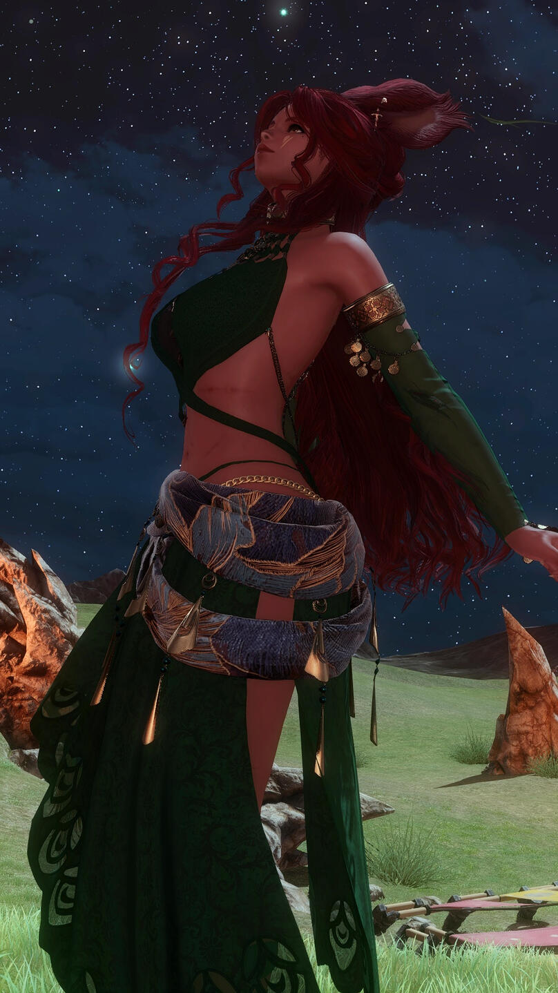 Emi is 5'10 tall and her figure is rather curvy. She wears her wine red hair in tribal braids or open and much to her dismay... her ears turned out to be rather short and fluffly. Her skin is tanned, the tattos on her nose and cheeks are golden and her hazle eyes are the only gentle features in her face.The Rava has no problems with revealing much of her sunkissed skin. In fact it is easier to move and some people are treating you much more friendly. She prefers flowy fabrics, which are light and won't weight her down.